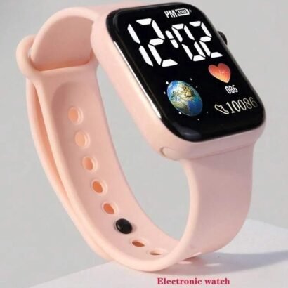 Stylish analogue-digital watch with luminous LED display, square black dial, and premium pink PU strap — a perfect blend of fashion and functionality for men and boys.