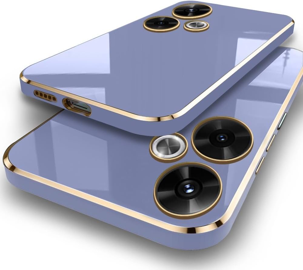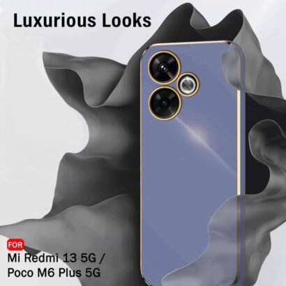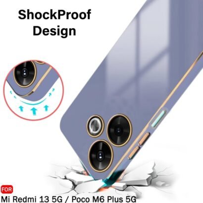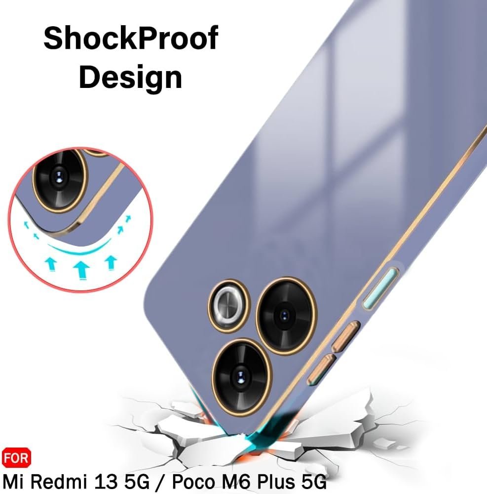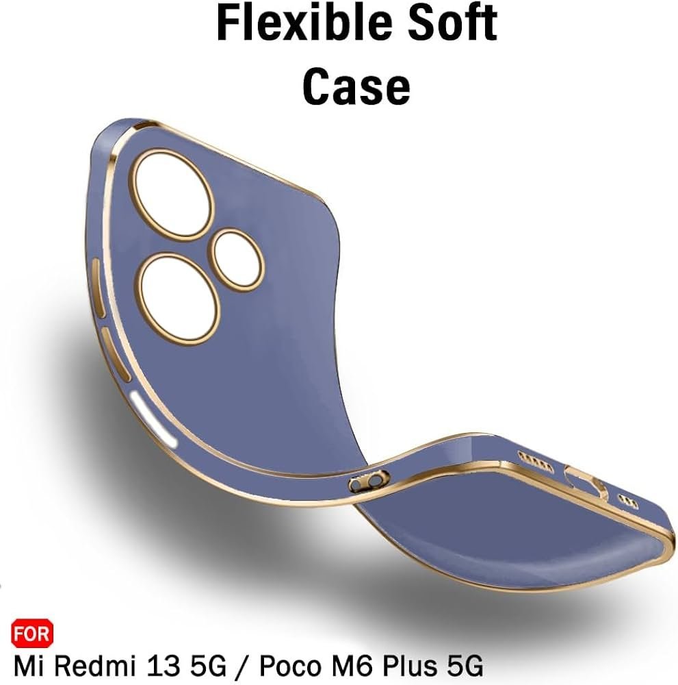 Luxurious Golden-Plated Back Cover Case for Mi Redmi 13 5G – Poco M6 Plus 5G _ Raised Lips for Camera & Screen Protection _ Shockproof Design _ Back Case for Redmi 13 (TPU, Greyish Blue)