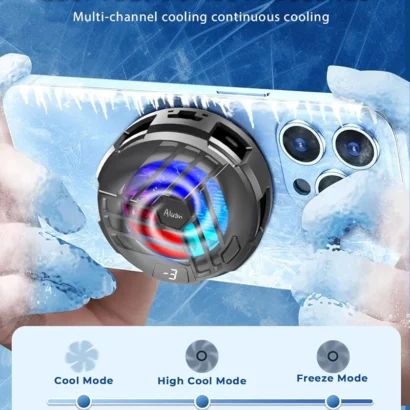 Stay cool during intense mobile gaming with this Magnetic Mobile Cooler. Engineered for iPhone 12–15 series and Android devices, it features a powerful semiconductor chip that dissipates heat in seconds, ensuring smooth gameplay and protecting your device’s battery. The strong magnetic attachment provides a secure fit, while the 3-speed LED display lets you easily adjust the cooling intensity (Low, Medium, High). Lightweight and portable, it’s perfect for long gaming sessions without lag or overheating.