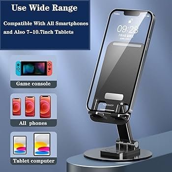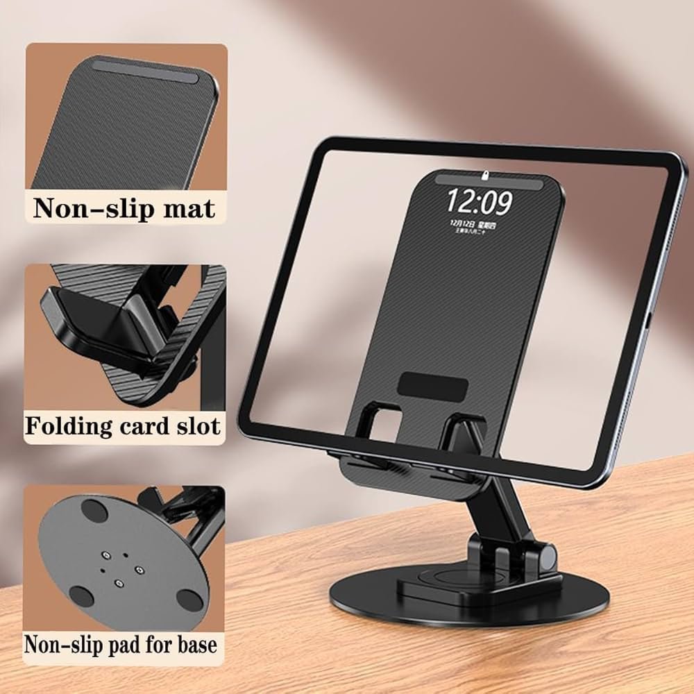 Mobile Phone Stand 360° Rotation Height and Angle Adjustable Cell Phone Stand for Desk Office Foldable Desktop Phone Holder for Smartphone 4-10_ Tablet Holder (Black)