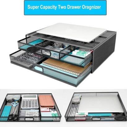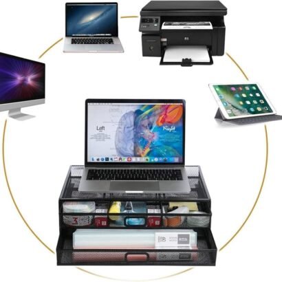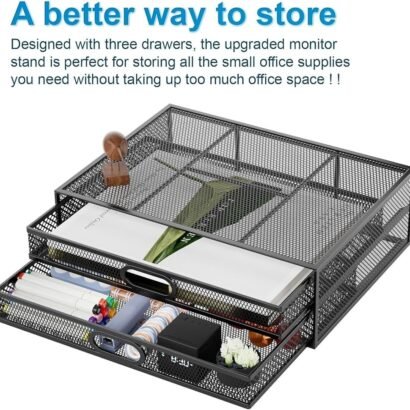 Monitor Stand Riser with Drawer – Metal Mesh Desk Organizer with Dual Pull Out Storage Drawer,Office Supply for Computer, PC, Laptop, Printer, Notebook, iMac (Black)