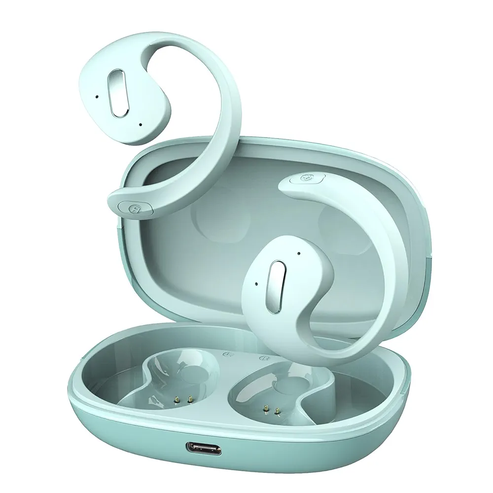 Open-ear wireless headphones with 16mm drivers, 40H playtime, fast charging, BT v5.3, and IPX5 water resistance for immersive, safe listening.