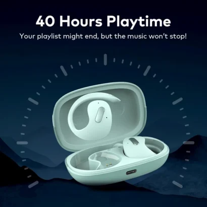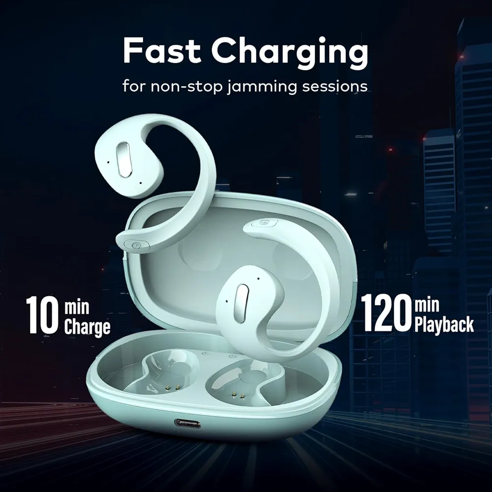 Experience immersive sound with Open 100 Open-Ear Wireless Headphones, designed for comfort and performance. The Open Wire Stereo technology delivers clear, spacious audio, while 16mm dynamic drivers provide deep bass and crisp highs for a full-spectrum listening experience. With 40 hours of playtime and fast charging, your music keeps going all day. Bluetooth v5.3 ensures a stable connection, and IPX5 water resistance makes these headphones perfect for workouts, commuting, or outdoor activities. The open-ear design allows you to stay aware of your surroundings while enjoying your audio.