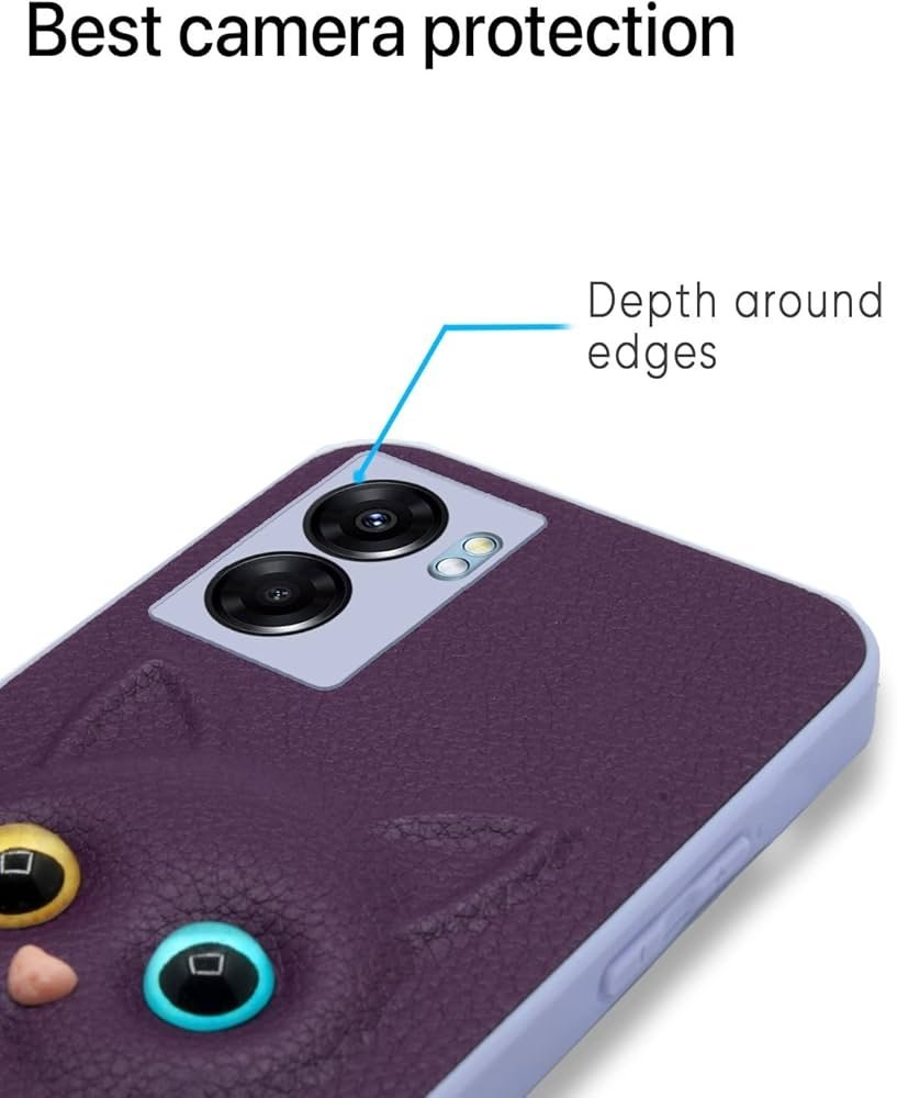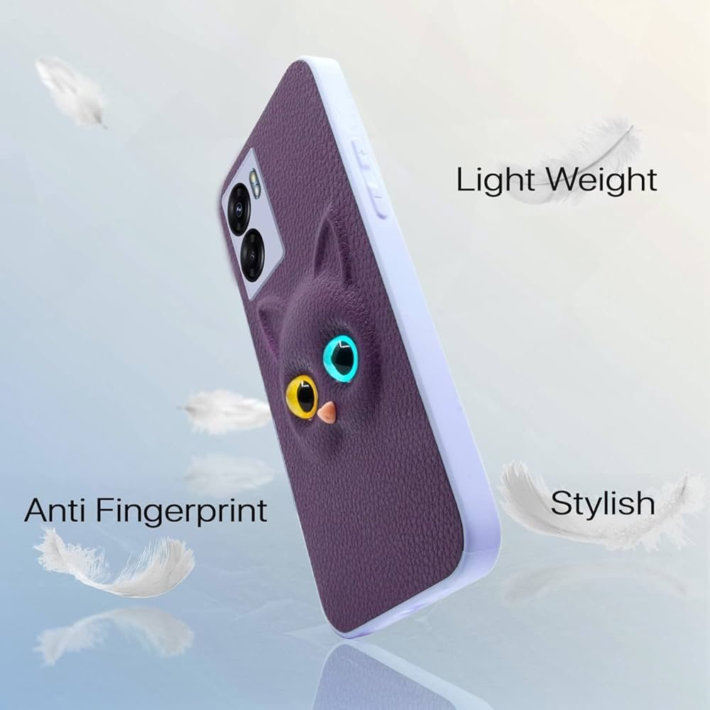 Oppo K10 5G Back Cover for Girls _ Cute Cat Leather Finish _ Soft TPU _ Case for Oppo K10 5G (Purple)