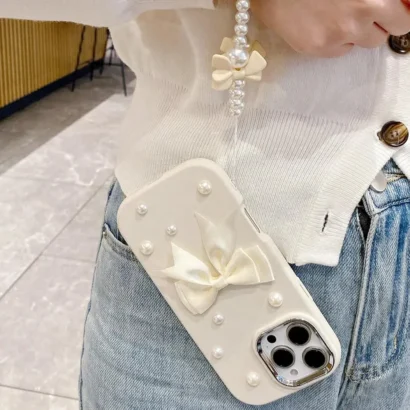 Add elegance and protection to your iPhone 16 Plus with the Pearl Bow Silicone Case – Beige. This stylish case combines dainty pearls, a chic bow accent, and lightweight protection for a luxurious and functional design.