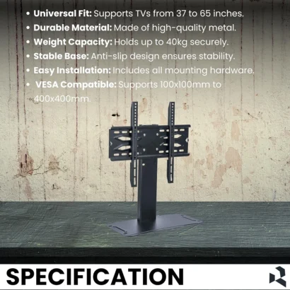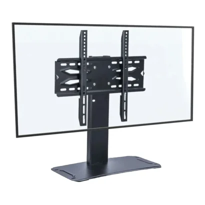 This heavy-duty portable TV stand is designed to support 32″–55″ LED and LCD TVs, with VESA compatibility up to 600×400 mm and weight capacity up to 50 kg. Crafted from durable alloy steel and finished in black, it provides a stable, modern solution for home or office setups. The adjustable height and compact design make it easy to relocate, while simple tool-free installation ensures you can set it up in minutes. Ideal as a table-top mount or portable TV stand.