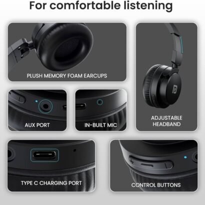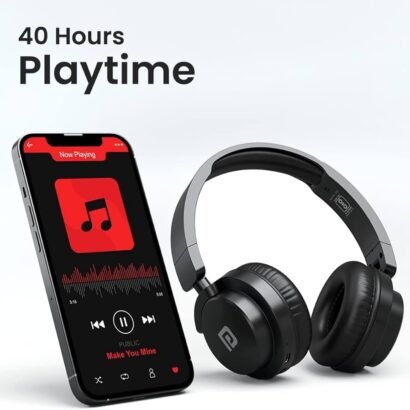 Portronics Muffs M2 Bluetooth Headphones On Ear with Upto 40 Hrs Playtime, 40mm Dynamic Drivers, AUX 3.5mm, Powerful Bass, Laptop & PC Support, Type C Charging Port, Foldable Design(Black)