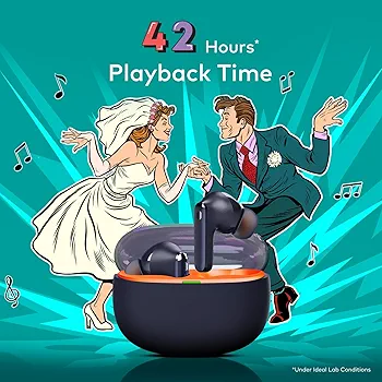 Power through your day with an incredible 42 hours of total playtime, supported by quick charging that keeps you going without interruptions. The ergonomic in-ear design ensures a snug, comfortable fit perfect for workouts, travel, and daily use. Built with IPX5 water resistance, these earbuds are ready for sweat, rain, and every adventure.
