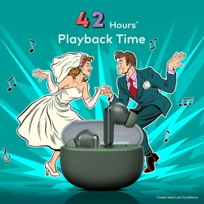 Featuring a Quad Mic System with Environmental Noise Cancellation (ENC), enjoy noise-free calls and seamless voice clarity, even in bustling surroundings. With Bluetooth v5.3, you get instant pairing, stable connectivity, and ultra-low latency, making these earbuds perfect for music, movies, and gaming.