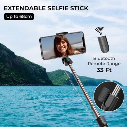 ● 【 SELFIE STICK WITH BLUETOOTH REMOTE 】: Bluetooth remote offers hassle-free photo control from a distance of up to 33 Feet , ensuring perfect shots without reaching for your device.
