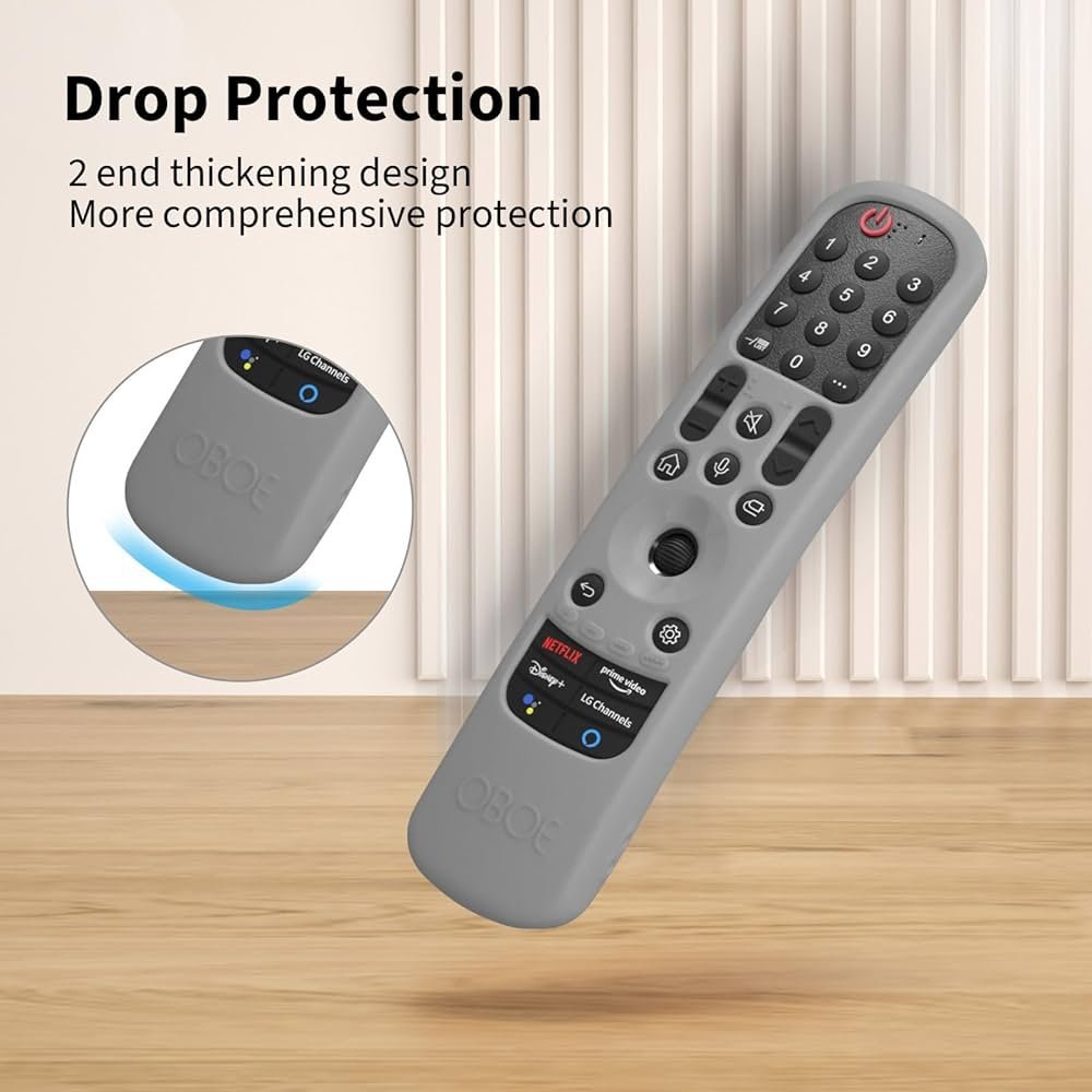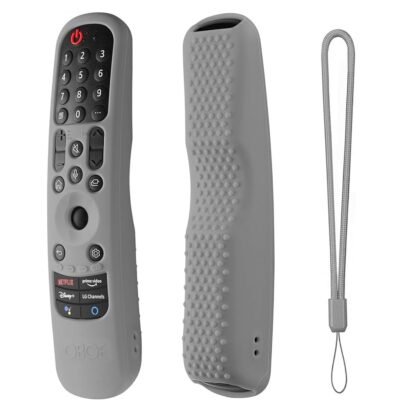 Protect your LG Magic Remote with this durable silicone cover, designed for AN-MR21GA (2021), MR22GA (2022), and MR23GA (2023) models. It safeguards against drops up to 3 meters, enhances grip with an anti-slip design, and comes with a convenient lanyard to prevent misplacement. Precision cut-outs allow full access to all buttons and ports.