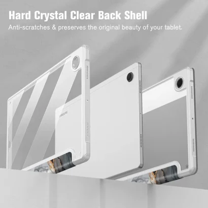 • Transparent Back Cover: Displays the tablet’s original color and Samsung logo while keeping it protected.