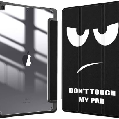 Durable Smart Cover with Transparent Back for iPad 10.2″ (2021/2020/2019) featuring the Donβt Touch design. Made with a polycarbonate back and TPU bumper for full protection, clear back to showcase your device, and auto wake/sleep functionality.