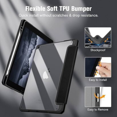 The Smart Cover with Transparent Back for iPad 10.2 Inch β Donβt Touch Design provides premium protection with a modern, stylish appearance. Its crystal-clear hard back allows your iPadβs beauty and Apple logo to shine through, while the flexible TPU bumper absorbs shocks and prevents damage from accidental drops. The soft microfiber front protects the screen from scratches and supports auto wake/sleep functionality for convenience and power efficiency. Whether youβre working, studying, or on the go, this lightweight and durable case ensures your iPad remains safe and strikingly stylish.