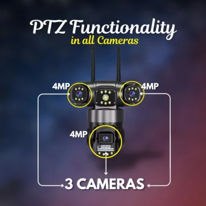 Ensure full outdoor security with the Smarthome Trion 4G Triple Lens Camera (BATAMN 4G). Equipped with 5MP FHD resolution and 360° panoramic coverage, this camera eliminates blind spots for complete surveillance. Dual lens technology delivers crisp images and videos, even in low-light conditions with full-color night vision. Motion detection alerts notify you instantly via the mobile app. Built for outdoor use with 4G connectivity, it’s perfect for homes, offices, and remote areas requiring reliable monitoring.