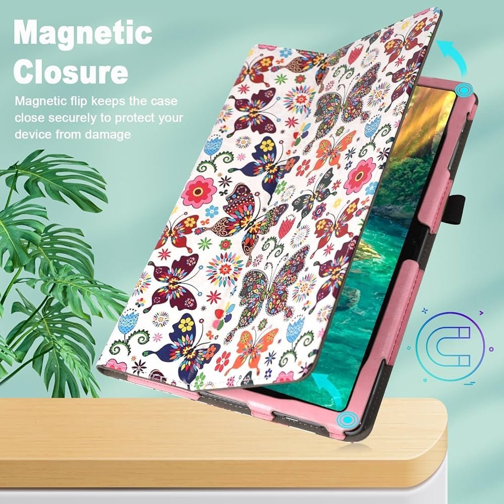 Tablet Pro 2023 Model_ 100110603 – Premium Leather Folio Protective Stand Cover with Pencil Holder, Butterfly