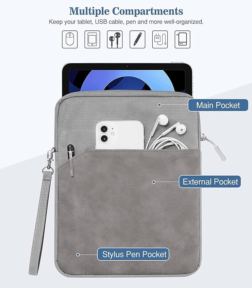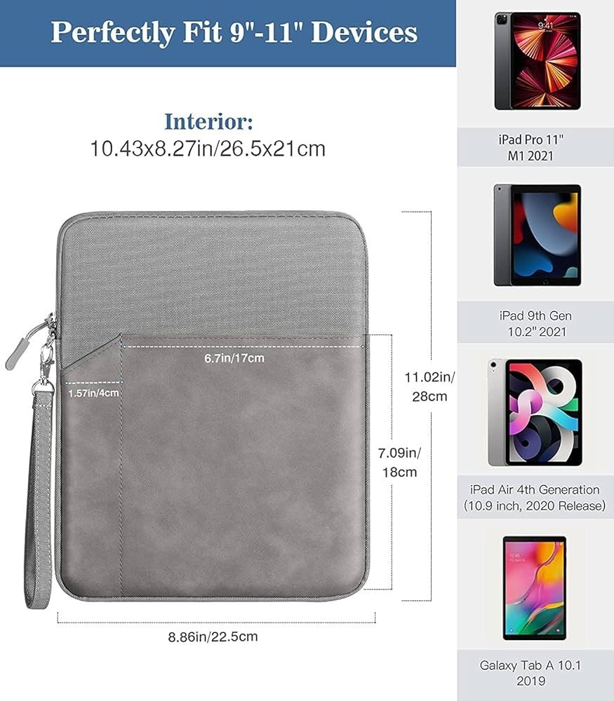 COMPATIBILITY – The sleeve bag fits most 9-11.5″ Tablets. Fits iPad air 5 10.9″ 2022, New iPad Pro 11 M1 2021, iPad 10.9 2020 iPad Air 4th Gen, iPad 9th Gen 10.2″ 2021, New iPad 8th Gen 10.2 2020, iPad Pro 11″ 2020, iPad Air 3 10.5″ 2019, iPad 10.2″ 2019, iPad Pro 10.5″, iPad 9.7″, iPad Air 2 9.7″, iPad 4/3/2 9.7″, Galaxy Tab S8 11″, Tab S6 Lite 10.4″ 2020, Tab S6 10.5″, Tab S3/S2 9.7″, Tab S4 10.5″, Tab A 10.1″, Tab A 9.7″, Tab S5e 10.5″, Tab Pro 10.1″, Tab Note 10.1″, Surface Go 2 10.5/Go 10″.