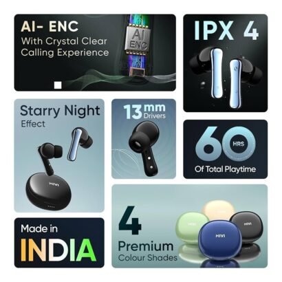 Enjoy powerful performance and crystal-clear sound with these True Wireless Earbuds, designed for all-day listening. Featuring 13mm electroplated bass drivers and custom amplifiers, they deliver deep, punchy lows and crisp highs for a premium audio experience. With over 45 hours of total playtime and fast charging support, you’ll never run out of music. The Bluetooth v5.3 ensures fast, stable connectivity, while the IPX4 sweatproof design makes them perfect for workouts and outdoor use. Finished in a sleek matte dual-tone look, these earbuds combine performance with style — proudly Made in India.