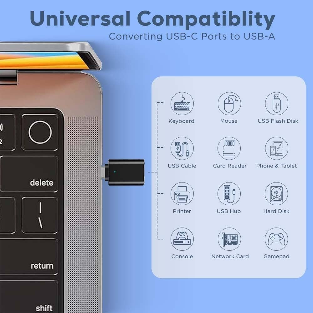 Upgrade your connectivity with the USB Type-A to Type-C Converter OTG. Designed for seamless compatibility, this adapter supports high-speed USB 3.0 data transfer for faster file syncing between laptops, smartphones, and tablets. Its plug-and-play design requires no drivers, making it perfect for quick connections, file transfers, and peripheral use. Ideal for productivity, gaming, and media access on all Type-C devices.