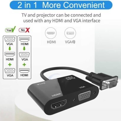 The VGA-HDMI VGA Adapter is compatible with old-styled notebooks, desktops, laptops, Projector which only has VGA ports to any HDMI VGA equiped devices.The VGA-HDMI VGA Adapter is compatible with old-styled notebooks, desktops, laptops, Projec… See all
