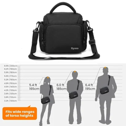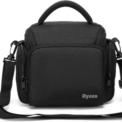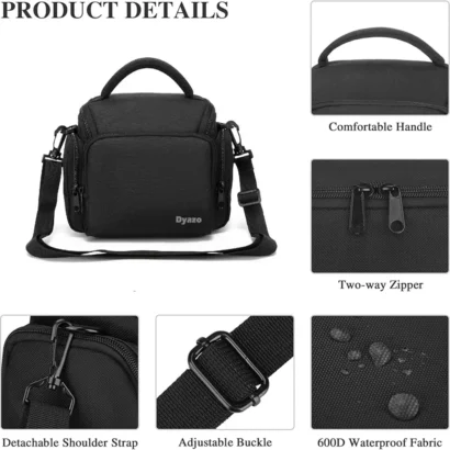 Water-resistant DSLR camera bag with shoulder strap, accessory pockets, and padded handle for organized, secure storage.