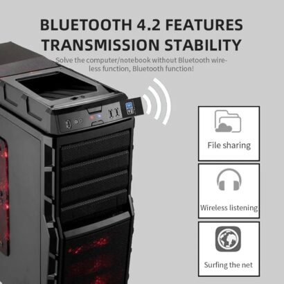 ● 【BLUETOOTH TRANSMITTER】: Bluetooth 4.2 enables your PC to wirelessly connect with Bluetooth devices(such as smart phone, ipad, tablet, speaker, headset, keyboard, mouse, printer, projector,etc.) for data transfer,edit or print, up to 10m connection distance(ONLY COMPATIBLE WITH WINDOWS 7/8/8.1/10)