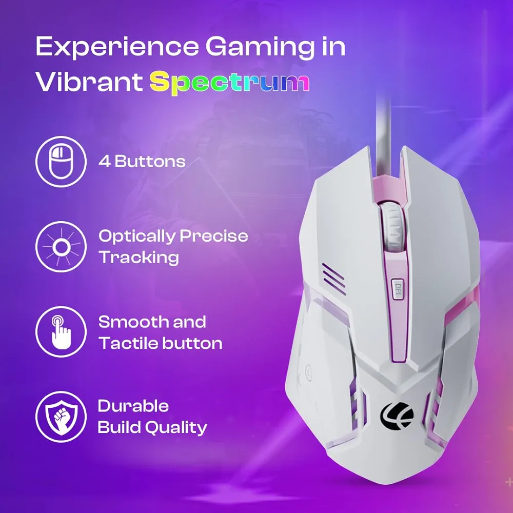 Elevate your gaming setup with this wired keyboard and mouse combo featuring 104 premium membrane keys designed for durability with an 8 million click lifespan. Optically precise tracking ensures accurate mouse movements, while the vibrant RGB backlighting adds a visually immersive experience. Ergonomically designed for long gaming sessions, this combo connects via USB and supports plug-and-play functionality for hassle-free setup on your PC.