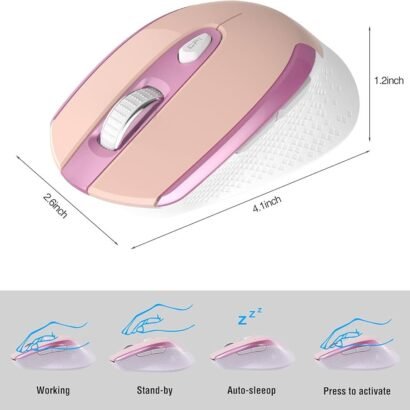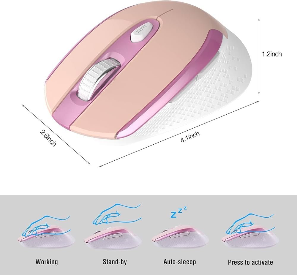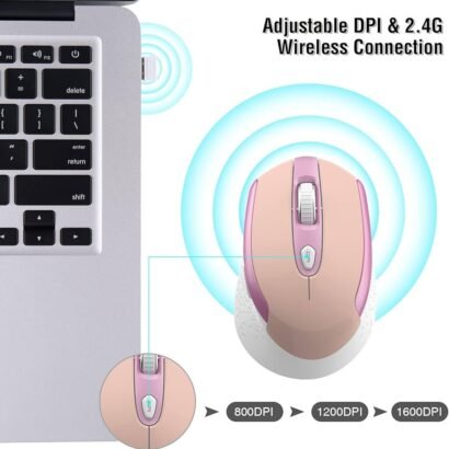 Wireless Mouse, 2.4G Silent Cordless Mouse for Laptop, Mouse with 6 Buttons and 3 Adjustable DPI for Computer, Deskbtop, MacBook, PC – Pink