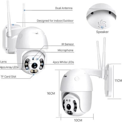● EYETECH :- PTZ IP Camera 355° Pan 90° Tilt Wi-Fi Camera with Two Way Audio- Wi-Fi antenna, 355° horizontal & 90° vertical rotation range cover a much bigger vision range with less blind area. This Two-Way Audio Wi-Fi camera allows you to speak & listen clearly throw your phone. 64gb memory card support
