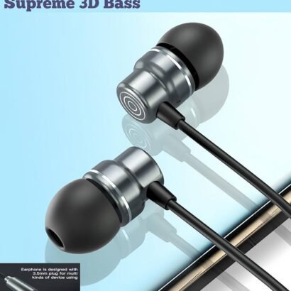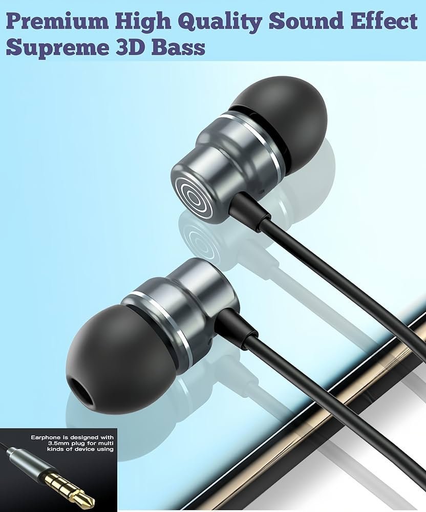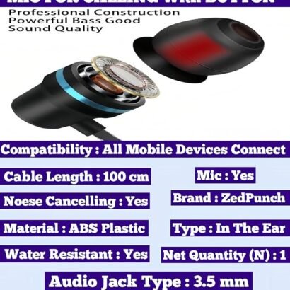 ZedPunch Earphone Turbo BASS Sound for All Devices and MIC for Calling with Button in-Ear Wired Earphones with 3.5mm Jack, Black