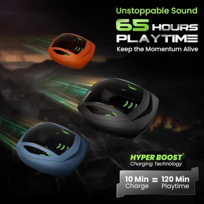 Experience next-level sound with Zing Wireless Earbuds. Featuring Active Noise Cancellation up to 32dB, quad mics with AI-ENC, and a cinematic audio experience, these earbuds ensure crystal-clear calls and immersive listening. Enjoy 55 hours of playtime, ultra-low 40ms latency, and Bluetooth 5.4 for seamless connectivity — all packed in a stylish Blaze Orange design with breathing LED lights.